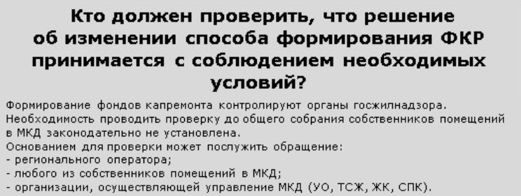 Инициировать общее собрание по вопросу смены способа формирования ФКР могут: