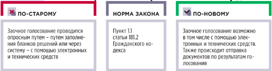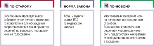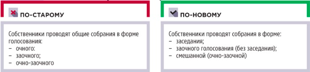 Сохранили возможность принимать решения заочно и добавили право отправлять документы по результатам голосования с помощью электронных и технических средств (рисунок 4).