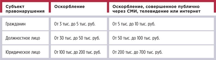 За распространение заведомо ложных сведений, которые порочат честь и достоинство другого лица или подрывают его репутацию могут оштрафовать до 3 млн руб. Такую ответственность ввели отдельной статьей в КоАП, и она предусмотрена только для юридических лиц. Кроме того, увеличили штрафы за оскорбления — унижение чести и достоинства другого лица. Новые размеры штрафов смотрите в таблице.