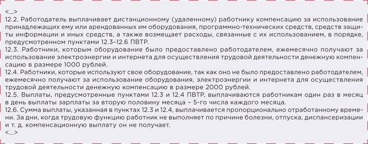 РИСУНОК 3 Фрагмент ПВТР с условием о компенсации работнику за то, что он использует свое оборудование