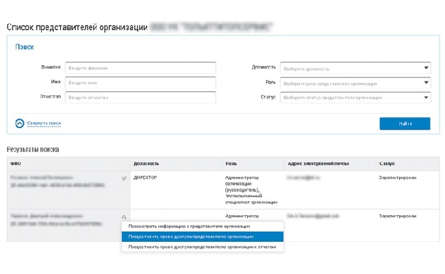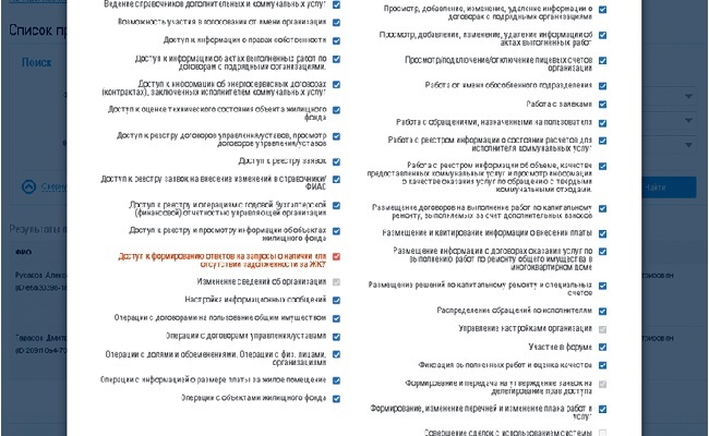 Для этого в личном кабинете через вкладку «Администрирование» перейдите в раздел «Сотрудники» (рисунок). Найдите сотрудника, который будет заниматься запросами о задолженности, и в выпадающем меню выберите пункт «Предоставить права доступа представителю организации» (рисунок). А далее в списке поставьте галочку напротив нужного права — оно называется «Доступ к формированию ответов на запросы о наличии или отсутствии задолженности за ЖКУ» (рисунок). Все, теперь сотрудник будет видеть информацию о запросах.