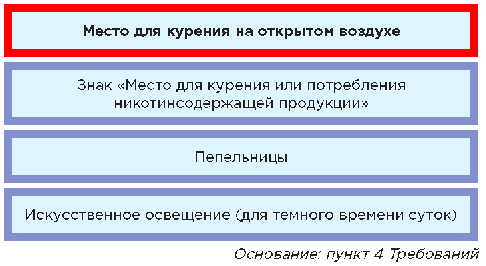 Рисунок 1. Перечень оборудования, которое должно быть в местах для курения, которые оборудованы на открытом воздухе