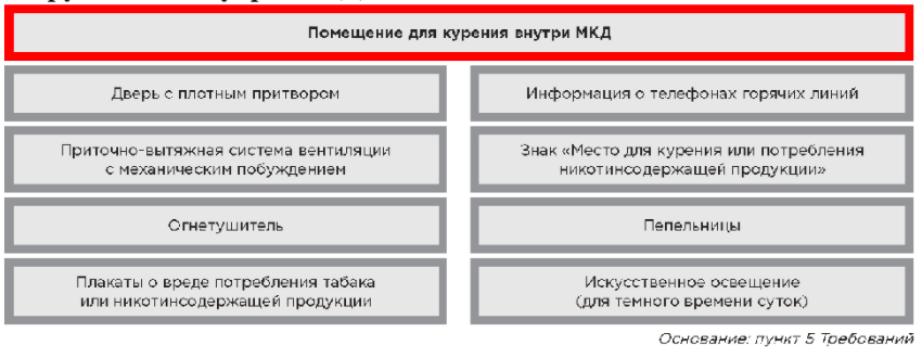 Рисунок 2. Перечень оборудования, которое должно быть в местах для курения, которые оборудованы внутри МКД